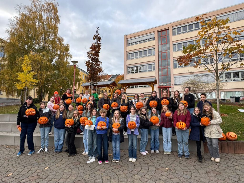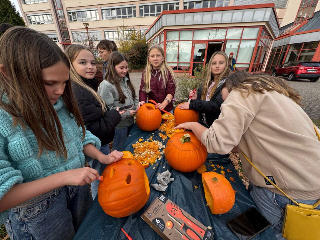 Wenn auf dem Schulhof der vertraute Duft von Herbst in der Luft liegt, dann ist klar: Unser alljährliches Kürbisschnitzen steht wieder vor der Tür! Auch in diesem Schuljahr folgten die Schülerinnen und Schüler der Einladung der Fachgruppe Englisch, die traditionell zu diesem fröhlichen Herbstbrauch einlädt.