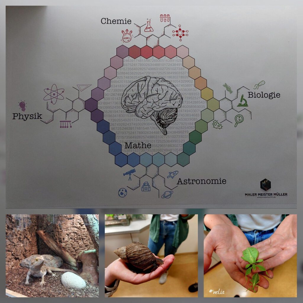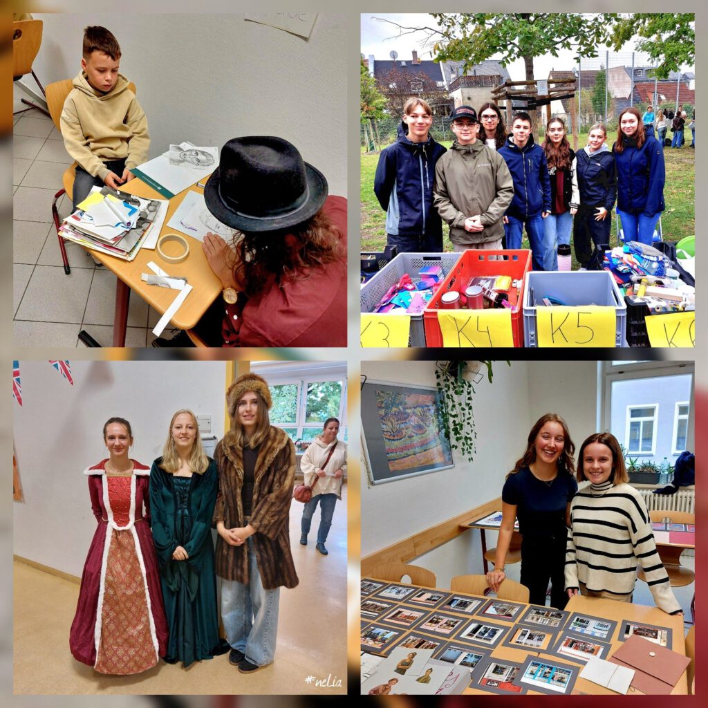 Alle Fachbereiche und viele AGs präsentierten sich. Neben der Ausstellung von Unterrichtsgegenständen und Schülerarbeiten waren die zahlreichen Mitmachaktionen gefragt. So bestaunten unsere Gäste zum Beispiel die Experimente in Biologie und Chemie, bastelten einen Bücherwurm in Deutsch oder sahen, was man im Unterricht alles mit einer interaktiven Tafel machen kann. Schüler der Klasse 10b organisierten eine Tombola und die beiden Leistungskurse Englisch Kl.11 einen Flohmarkt.