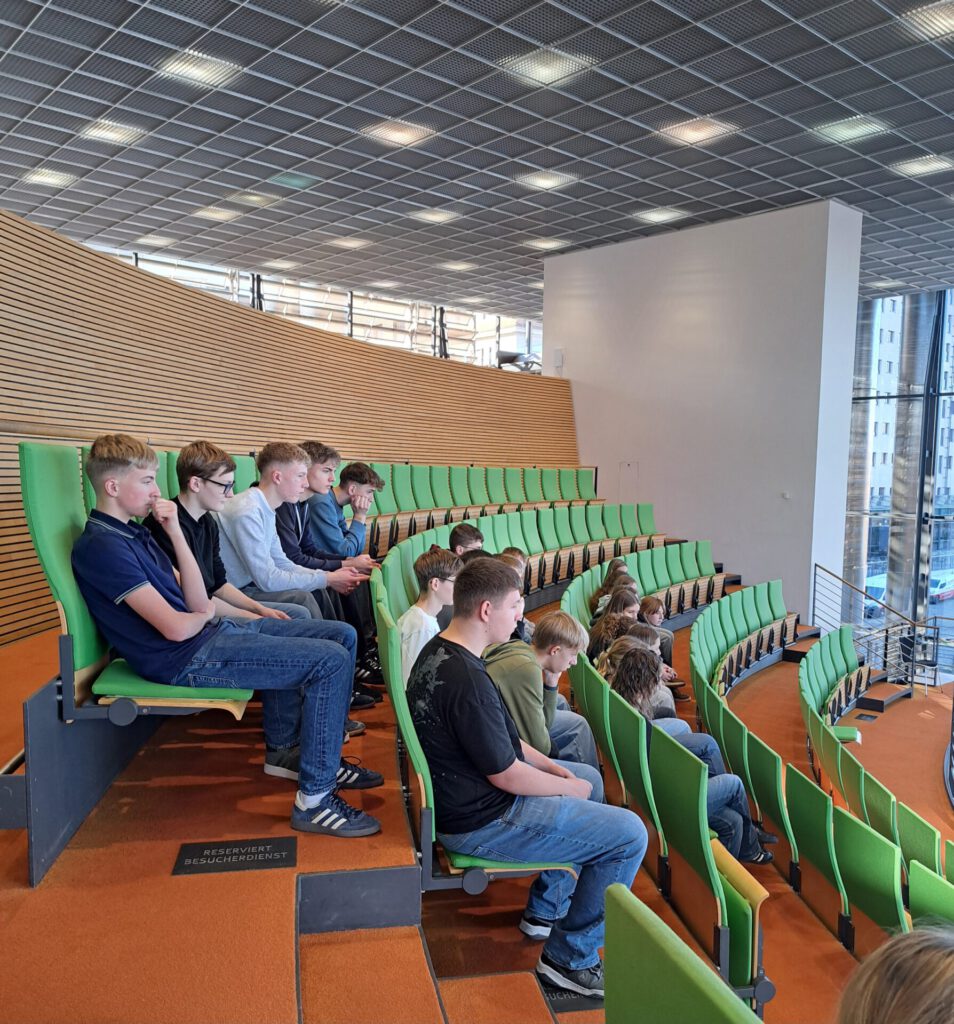 Am 01.12.2025 besuchten wir, die neunten Klassen, den Sächsischen Landtag in Dresden. Wir bekamen eine Führung, bei der wir viel Interessantes über den Landtag und die Aufgaben dort erfahren haben. Außerdem durften wir auch bei einer öffentlichen Sitzung zuschauen. Anschließend kam die Politikerin Ina Klemm (CDU) zu uns, der wir Fragen stellen konnten. Am Ende hatten wir noch etwas Freizeit in Dresden.