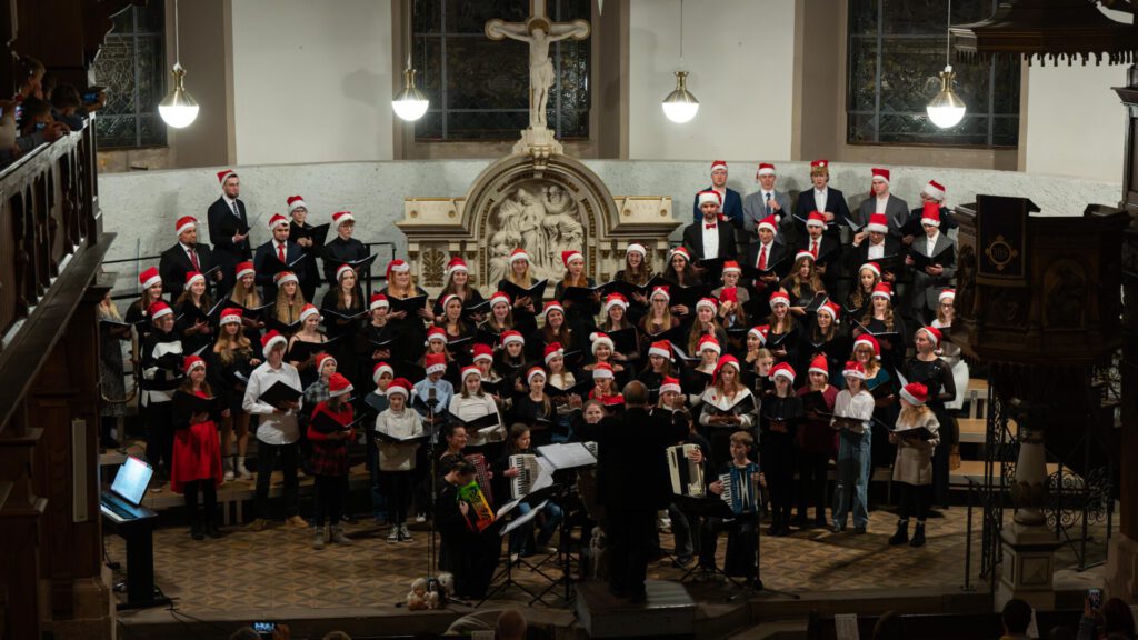 Traditionell fand das Konzert seinen Abschluss mit dem Weihnachtsklassiker „O du fröhliche“, den die Chöre und das Publikum gemeinsam sangen. Dieser Moment des Innehaltens und des Miteinanders ließ die beiden Konzertabende auf besonders stimmungsvolle Weise ausklingen.