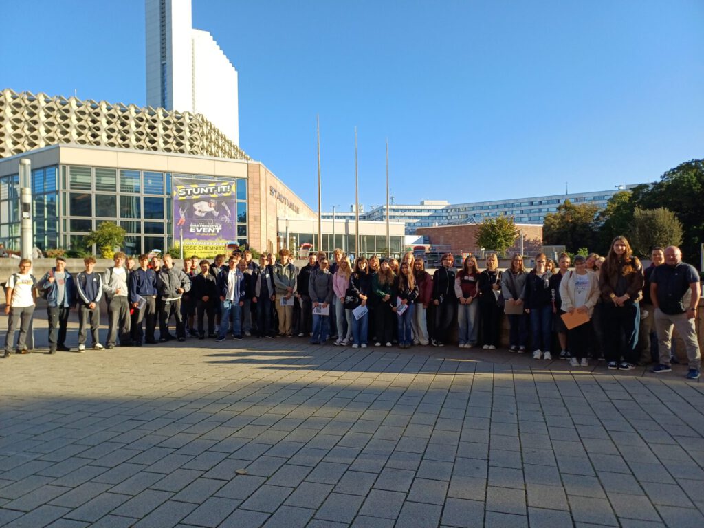 Doch so richtig anschaulich wurde das Thema erst im Rahmen der Exkursion am Donnerstag, den 11.09.2025. Insgesamt 51 Schüler, 4 Lehrkräfte und 1 Referendar machten sich auf den Weg nach Chemnitz. Aufgeteilt in zwei Gruppen wurde sowohl das Grabungsteam Chemnitz auf dem Sonnenberg besucht als auch das Naturkundemuseum im TIETZ.