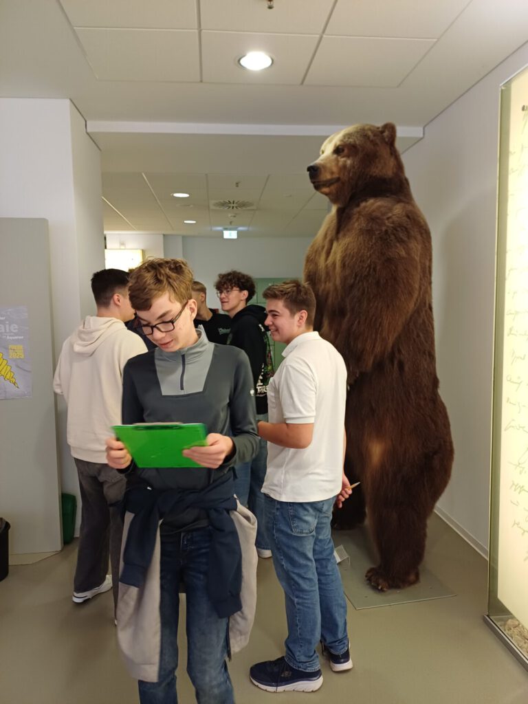 Die großen Funde und Fossilienraritäten waren dann natürlich im Naturkundemuseum im TIETZ zu bestaunen. Schon das Foyer, in welchem der „Steinerne Wald“ ausgestellt ist, machte reichlich Eindruck auf uns. In Gruppen erkundeten die Schüler dann das Museum und lösten Aufgaben zum Thema. Anschaulicher kann das Thema wohl nur noch mit VR-Brillen vermittelt werden – was in einer der nächsten Geo-Stunden auf dem Plan stehen wird.